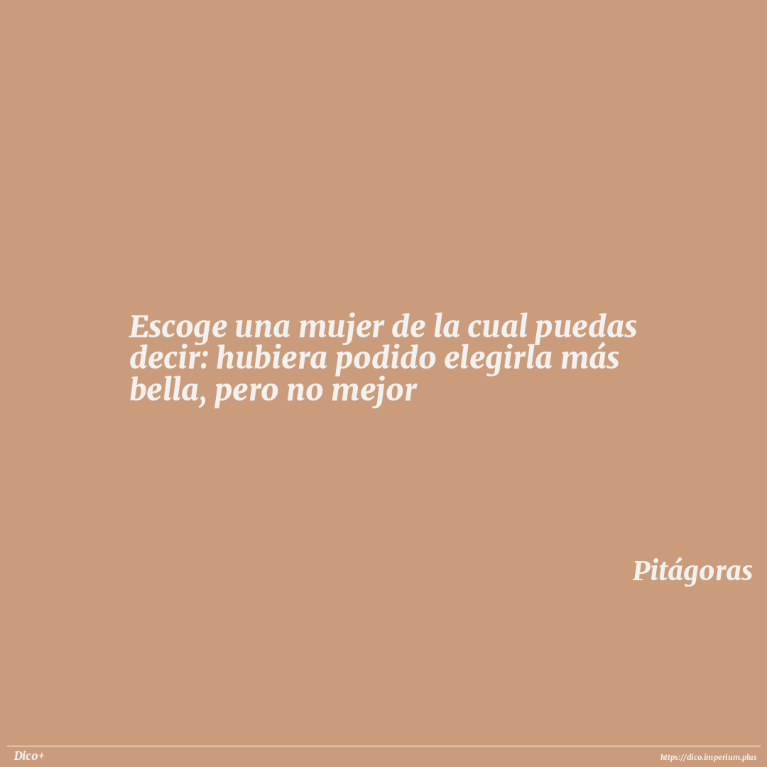 Escoge una mujer de la cual puedas decir: hubiera podido elegirla más bella, pero no mejor