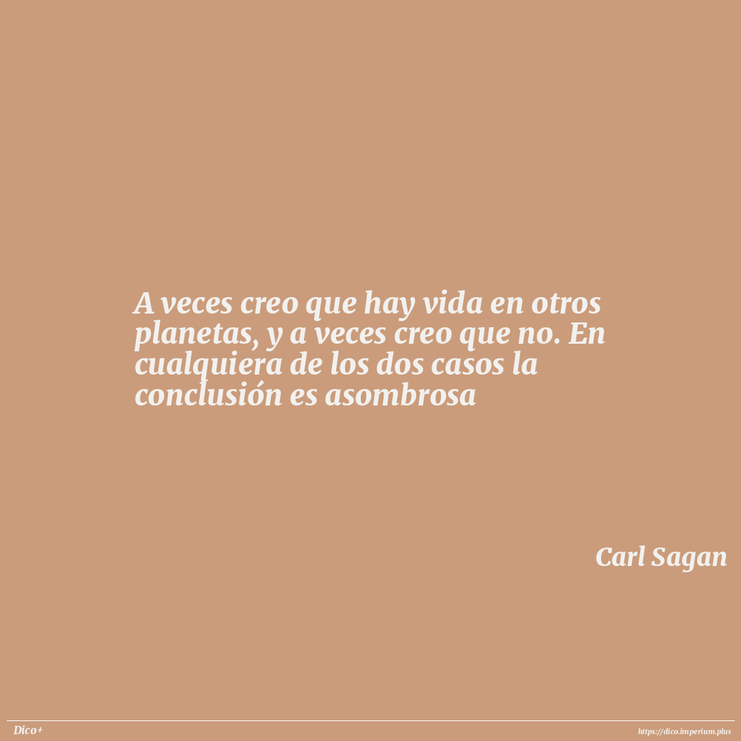 A veces creo que hay vida en otros planetas, y a veces creo que no. En cualquiera de los dos casos la conclusión es asombrosa
