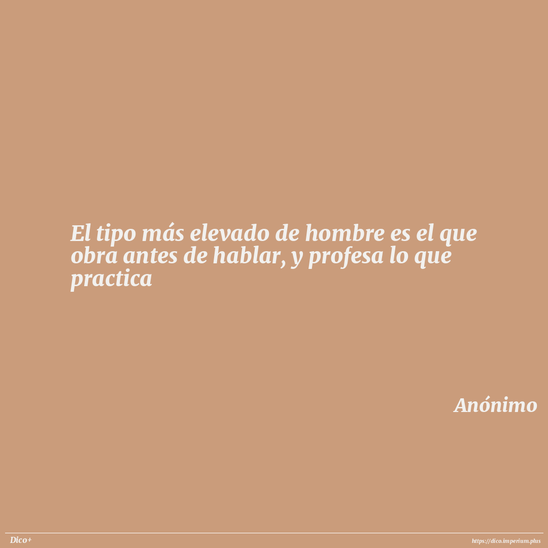 El tipo más elevado de hombre es el que obra antes de hablar, y profesa lo que practica