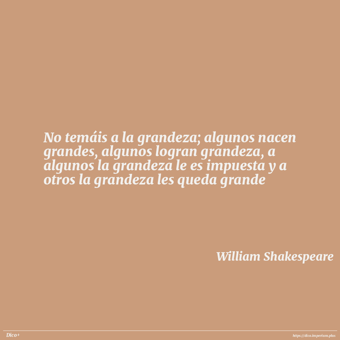No temáis a la grandeza; algunos nacen grandes, algunos logran grandeza, a algunos la grandeza le es impuesta y a otros la grandeza les queda grande