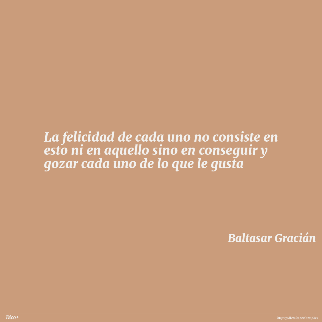 La felicidad de cada uno no consiste en esto ni en aquello sino en conseguir y gozar cada uno de lo que le gusta