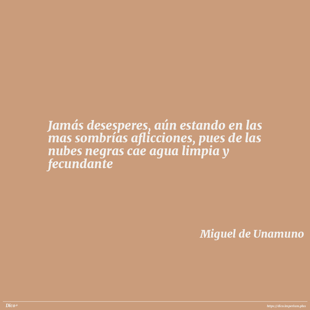 Jamás desesperes, aún estando en las mas sombrías aflicciones, pues de las nubes negras cae agua limpia y fecundante