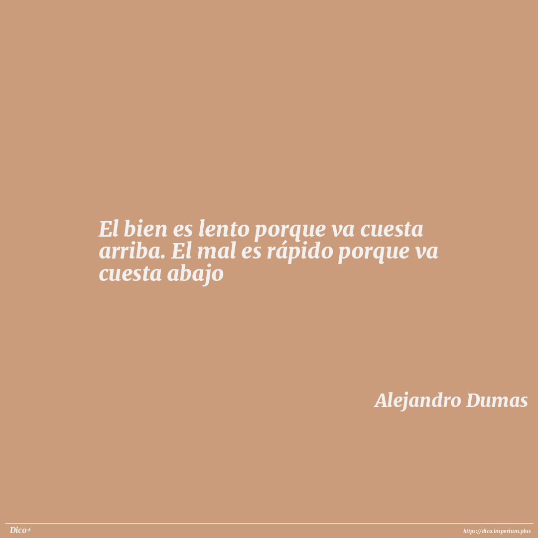 El bien es lento porque va cuesta arriba. El mal es rápido porque va cuesta abajo