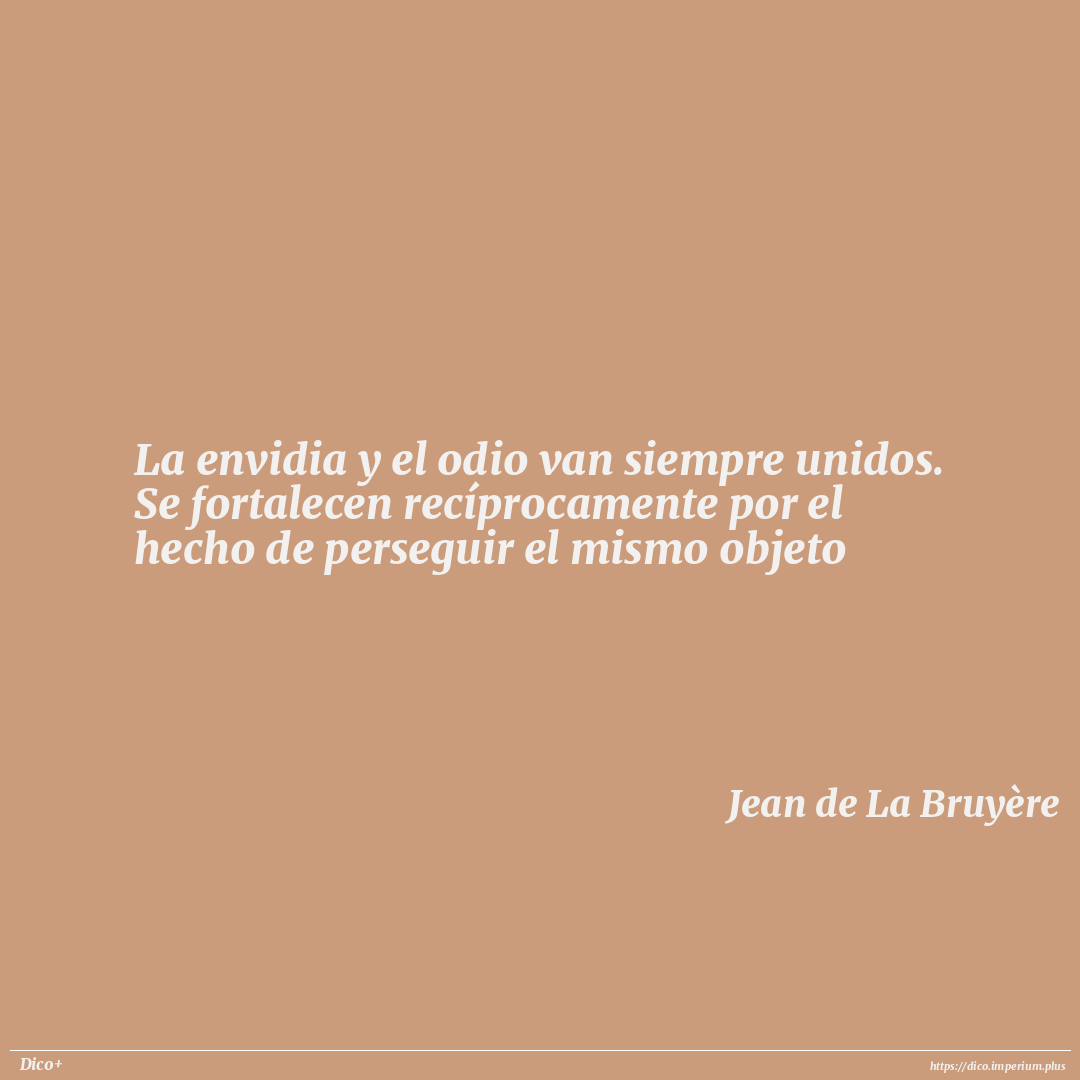 La envidia y el odio van siempre unidos. Se fortalecen recíprocamente por el hecho de perseguir el mismo objeto