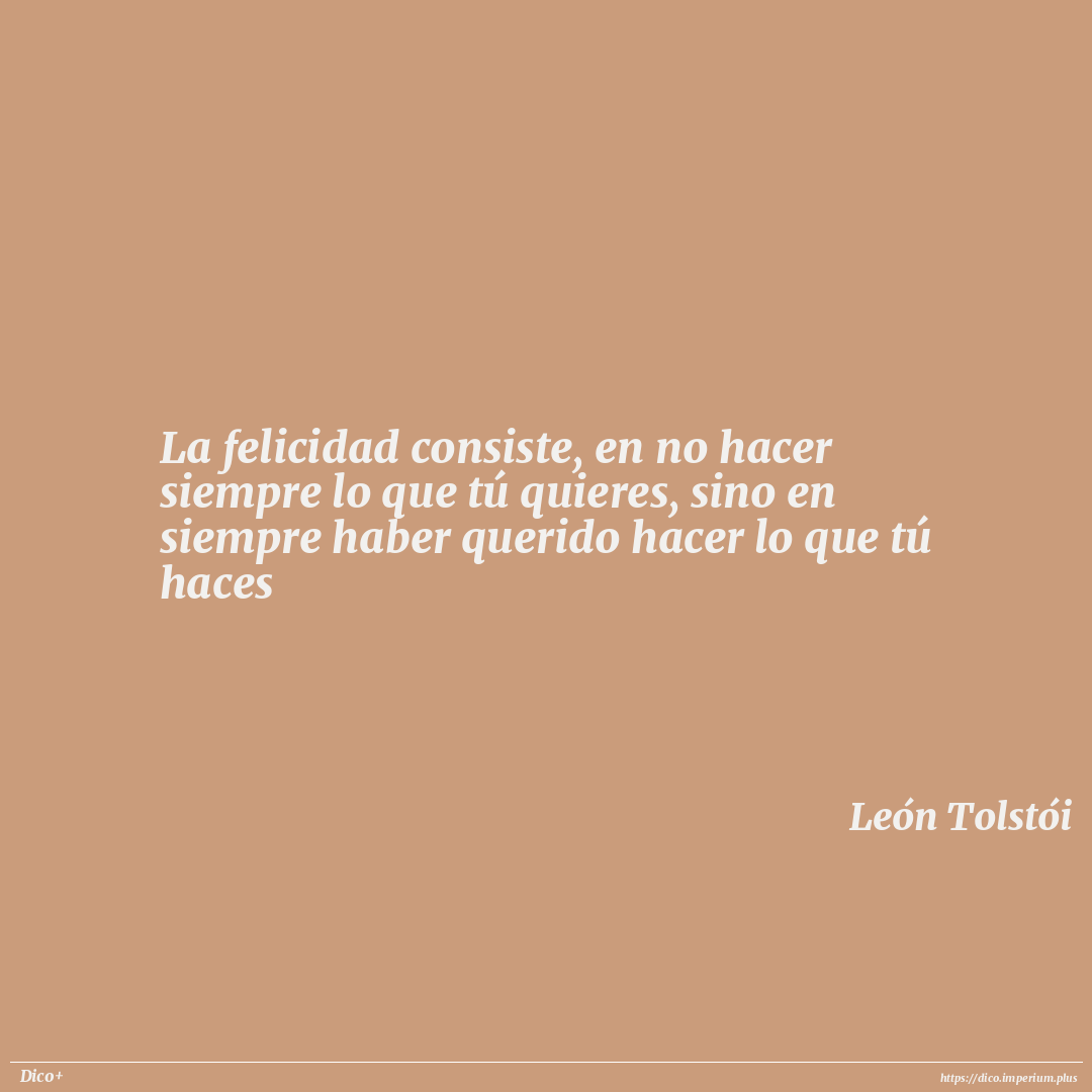 La felicidad consiste, en no hacer siempre lo que tú quieres, sino en siempre haber querido hacer lo que tú haces