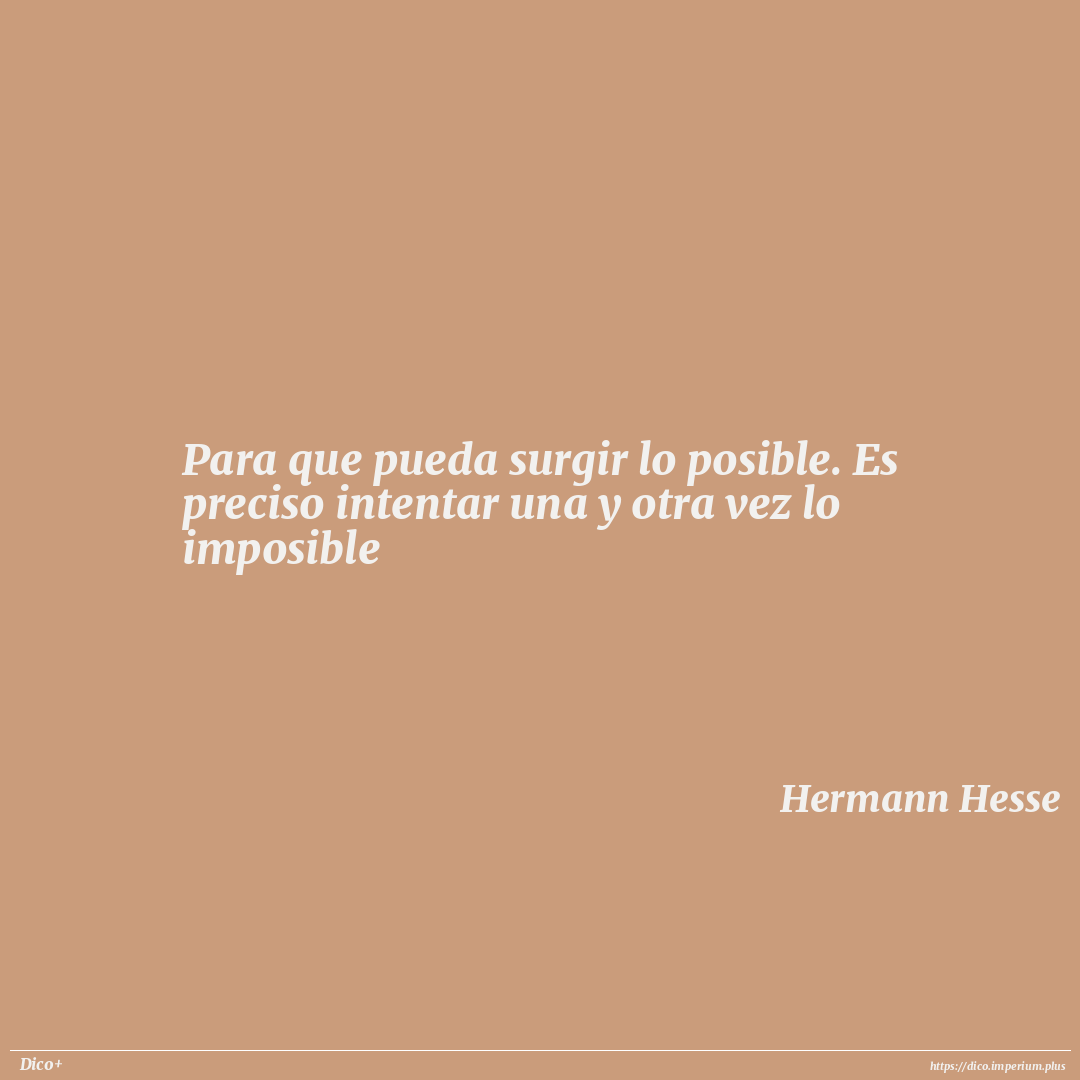 Para que pueda surgir lo posible. Es preciso intentar una y otra vez lo imposible