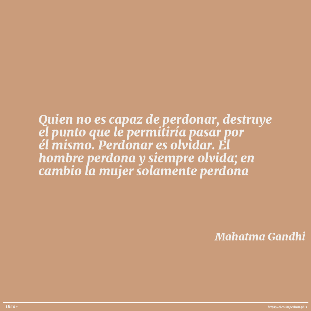 Quien no es capaz de perdonar, destruye el punto que le permitiría pasar por él mismo. Perdonar es olvidar. El hombre perdona y siempre olvida; en cambio la mujer solamente perdona