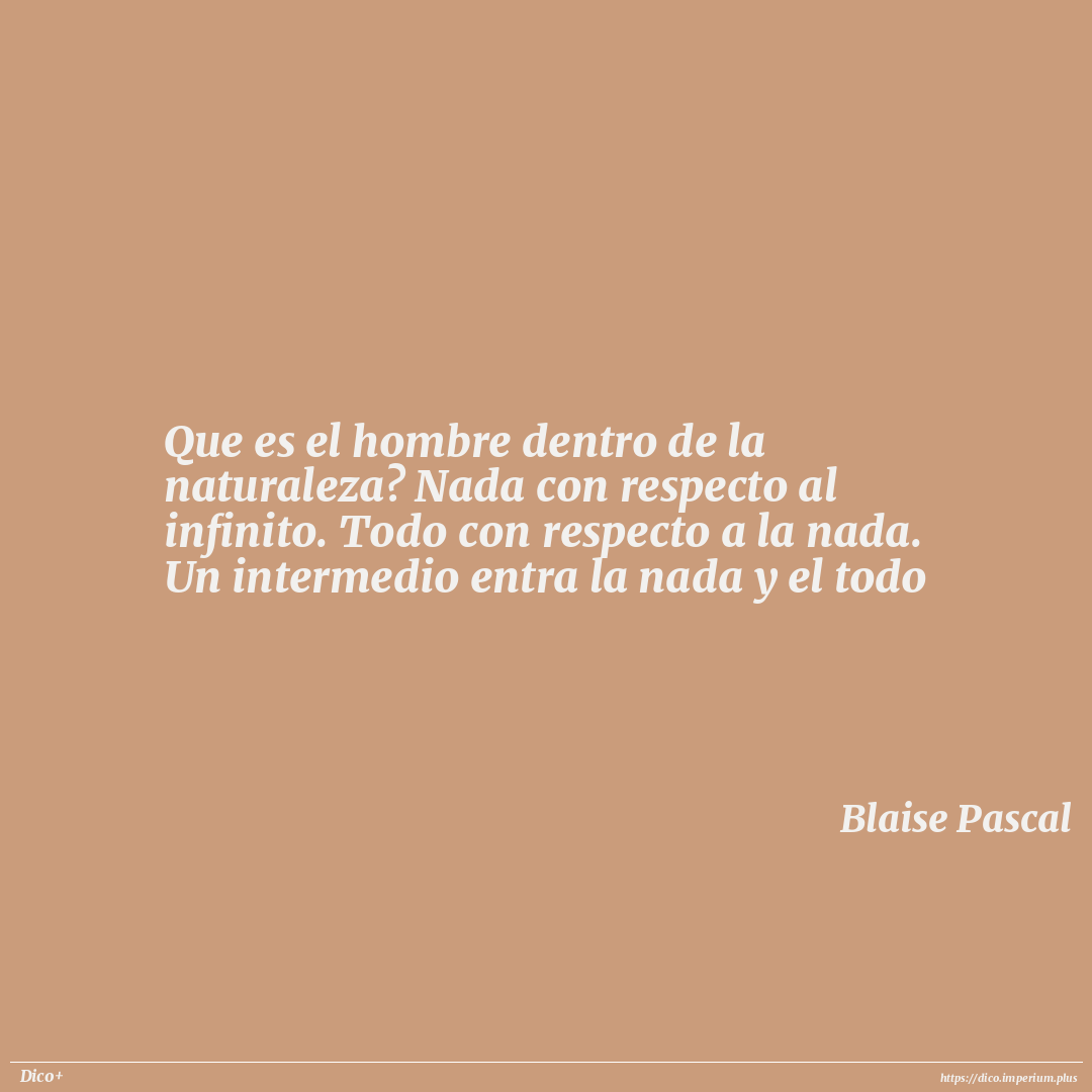 Que es el hombre dentro de la naturaleza? Nada con respecto al infinito. Todo con respecto a la nada. Un intermedio entra la nada y el todo