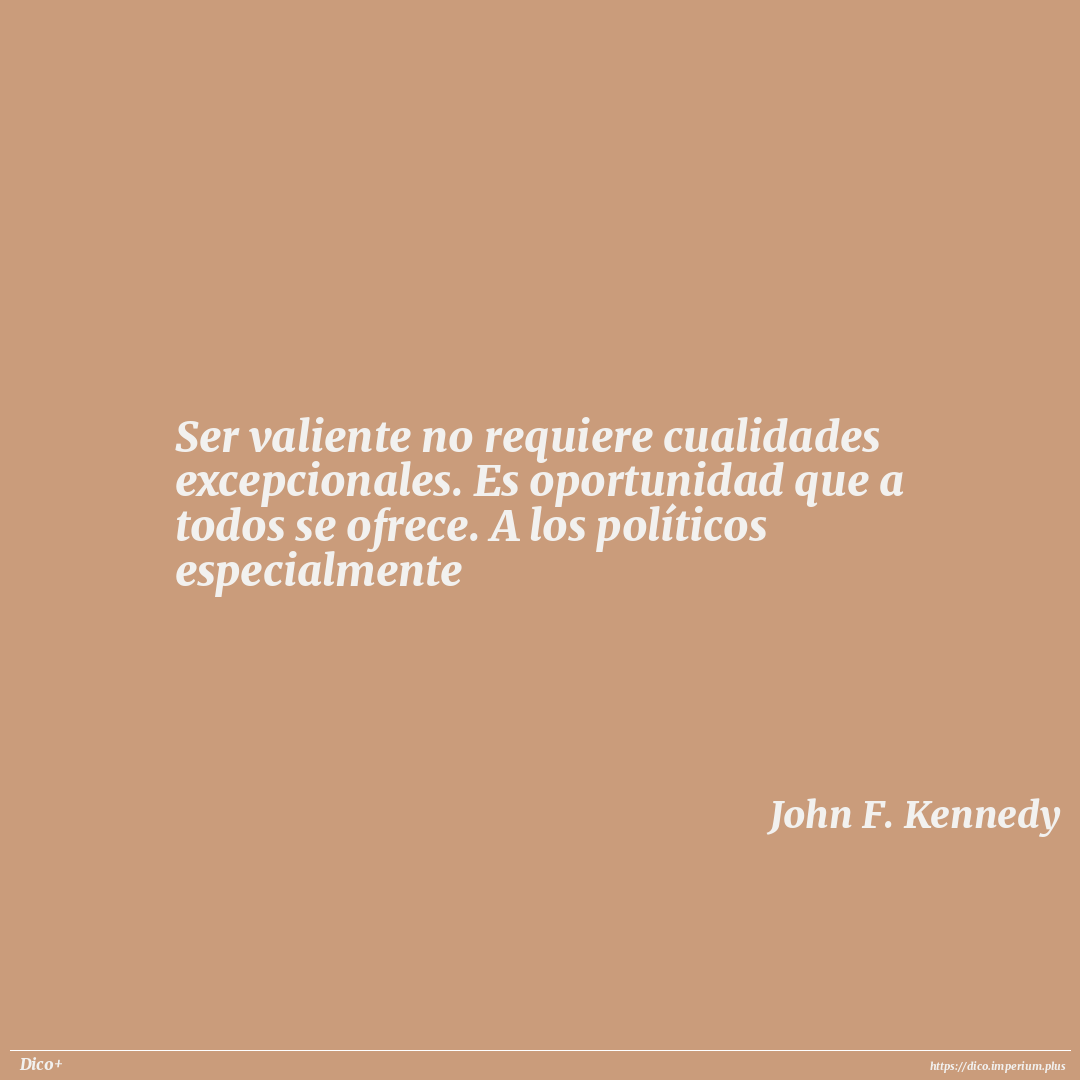 Ser valiente no requiere cualidades excepcionales. Es oportunidad que a todos se ofrece. A los políticos especialmente