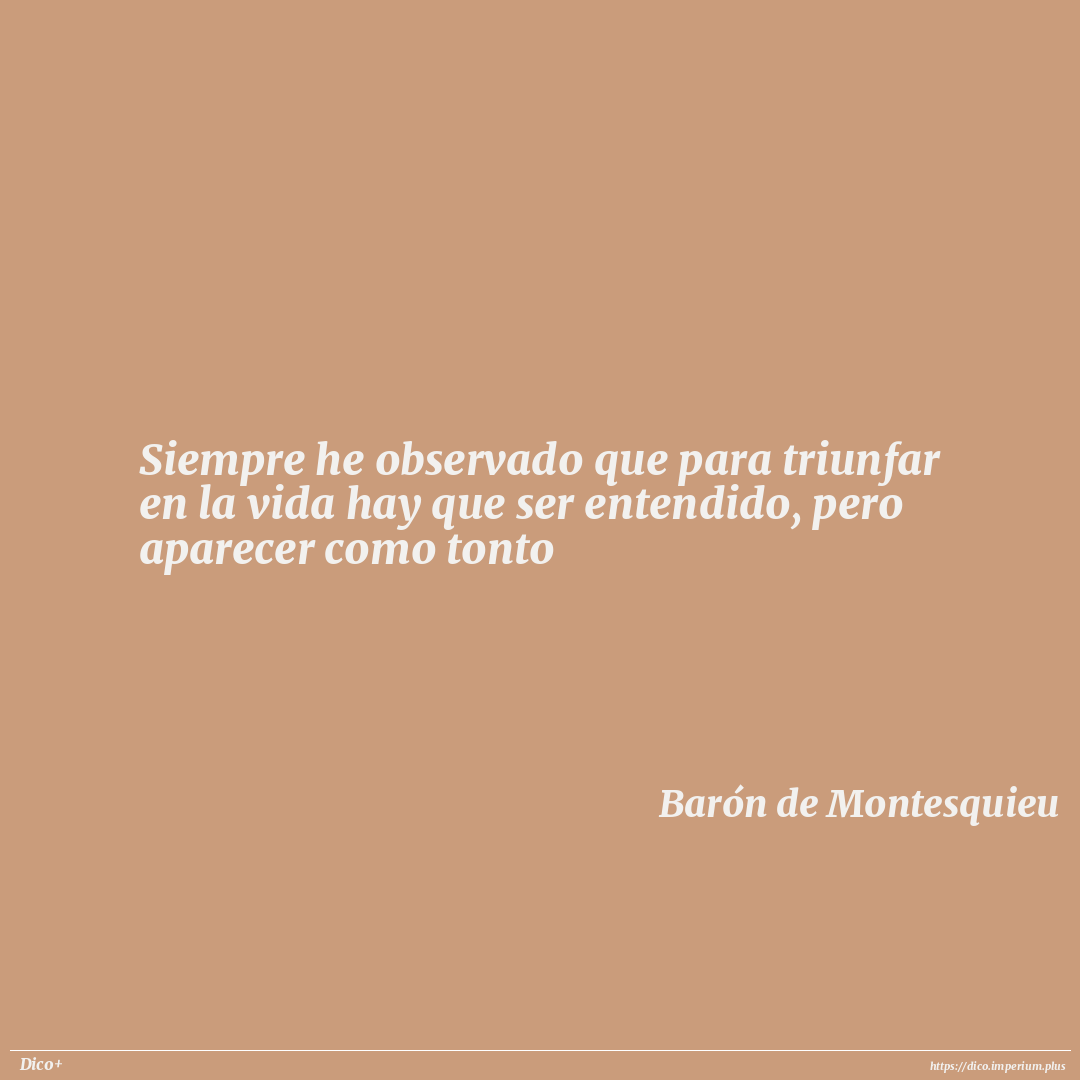 Siempre he observado que para triunfar en la vida hay que ser entendido, pero aparecer como tonto