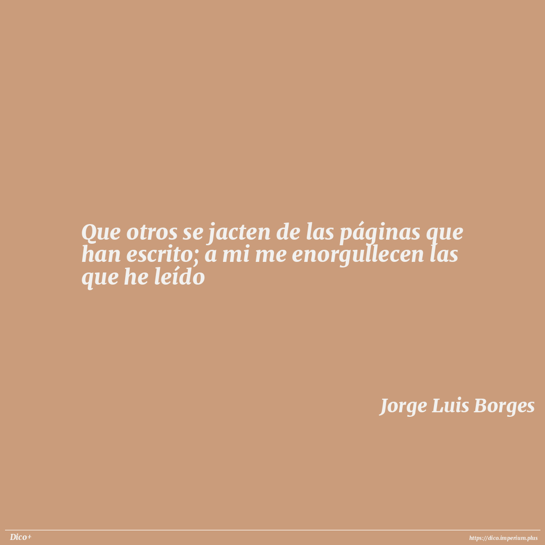 Que otros se jacten de las páginas que han escrito; a mi me enorgullecen las que he leído