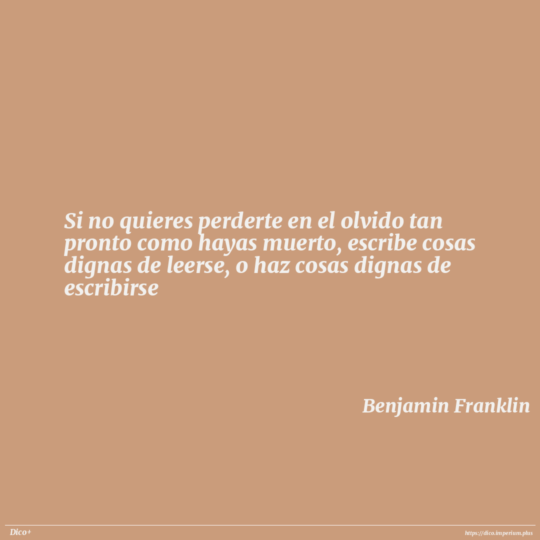 Si no quieres perderte en el olvido tan pronto como hayas muerto, escribe cosas dignas de leerse, o haz cosas dignas de escribirse