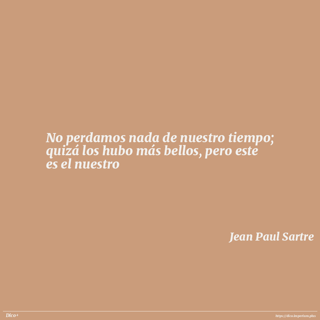 No perdamos nada de nuestro tiempo; quizá los hubo más bellos, pero este es el nuestro