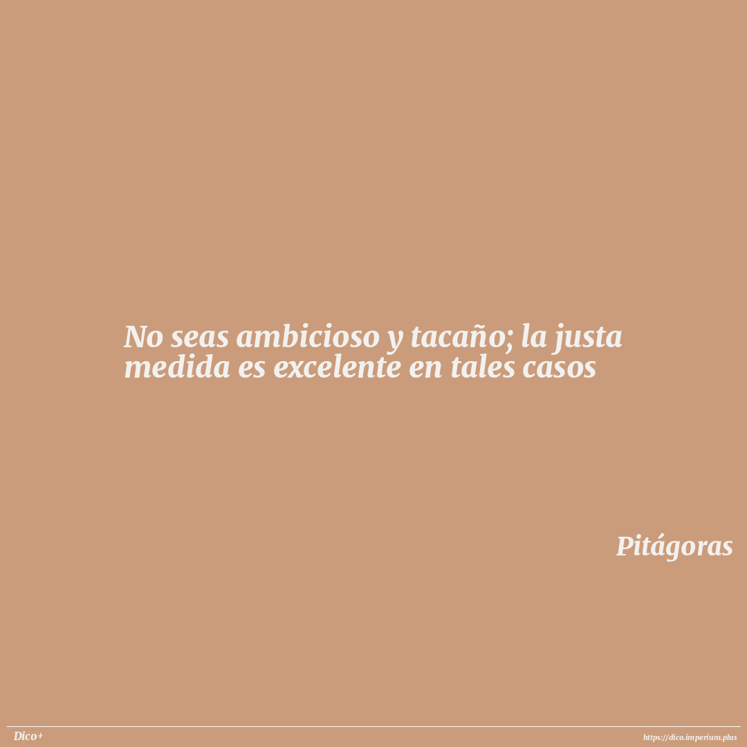 No seas ambicioso y tacaño; la justa medida es excelente en tales casos