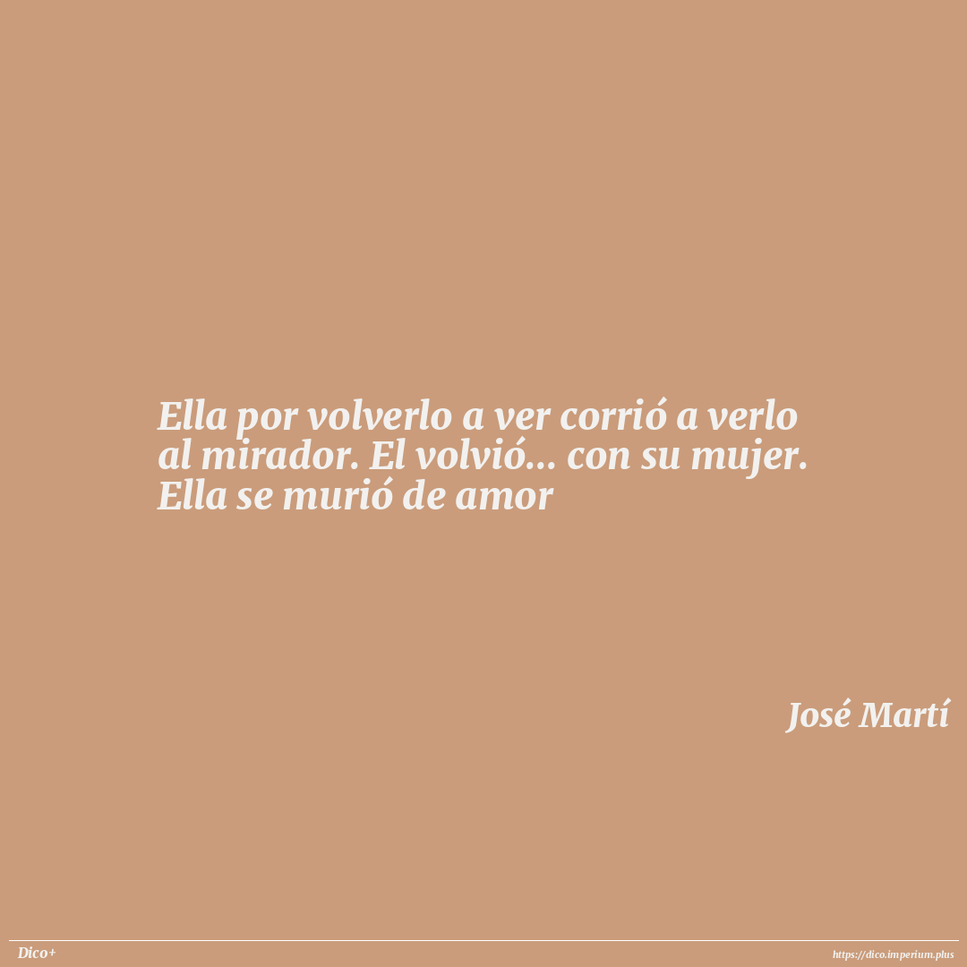 Ella por volverlo a ver corrió a verlo al mirador. El volvió... con su mujer. Ella se murió de amor