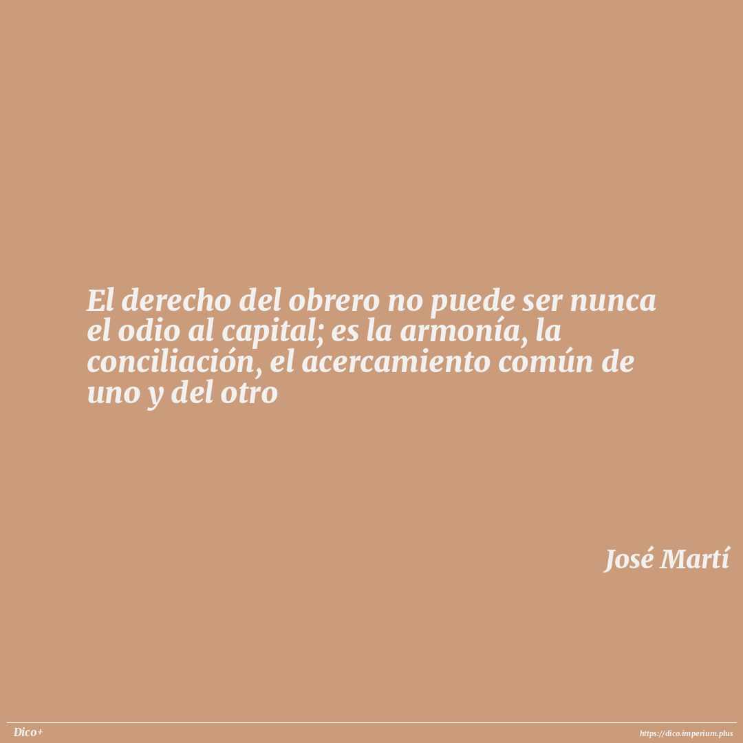 El derecho del obrero no puede ser nunca el odio al capital; es la armonía, la conciliación, el acercamiento común de uno y del otro