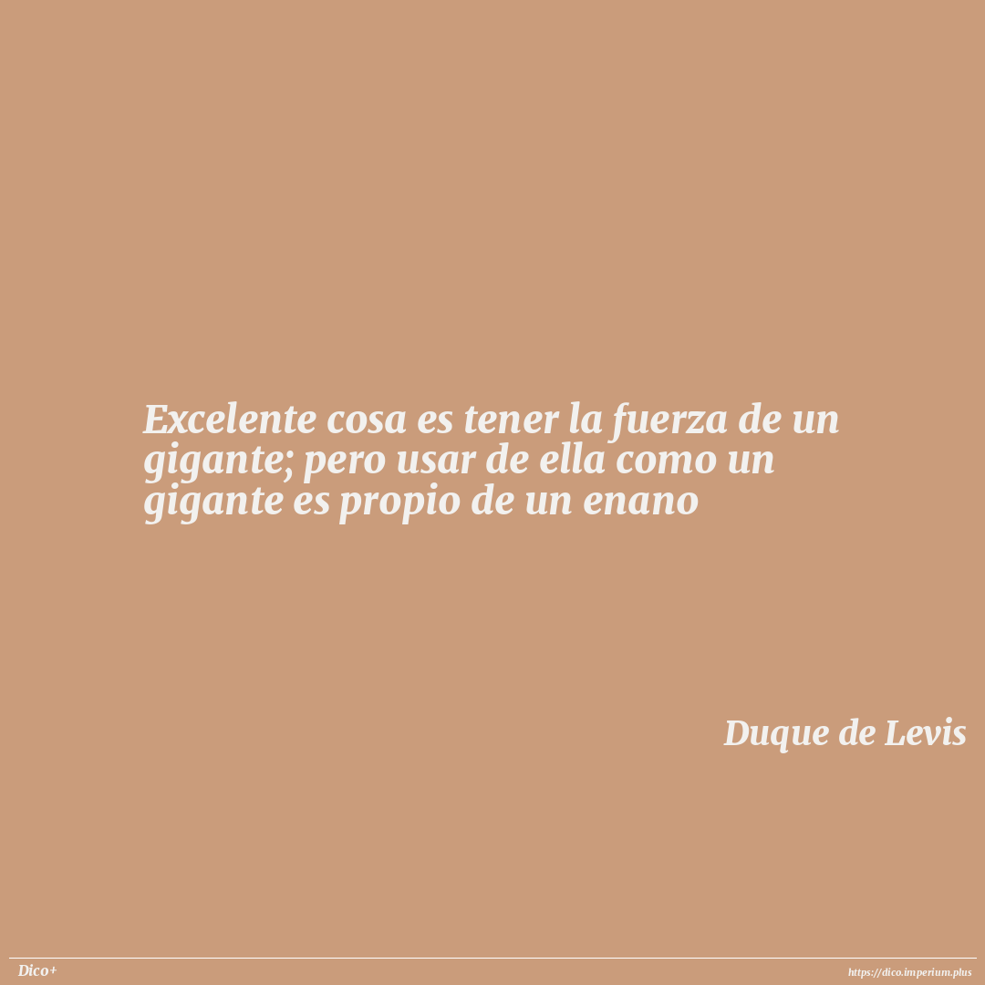 Excelente cosa es tener la fuerza de un gigante; pero usar de ella como un gigante es propio de un enano