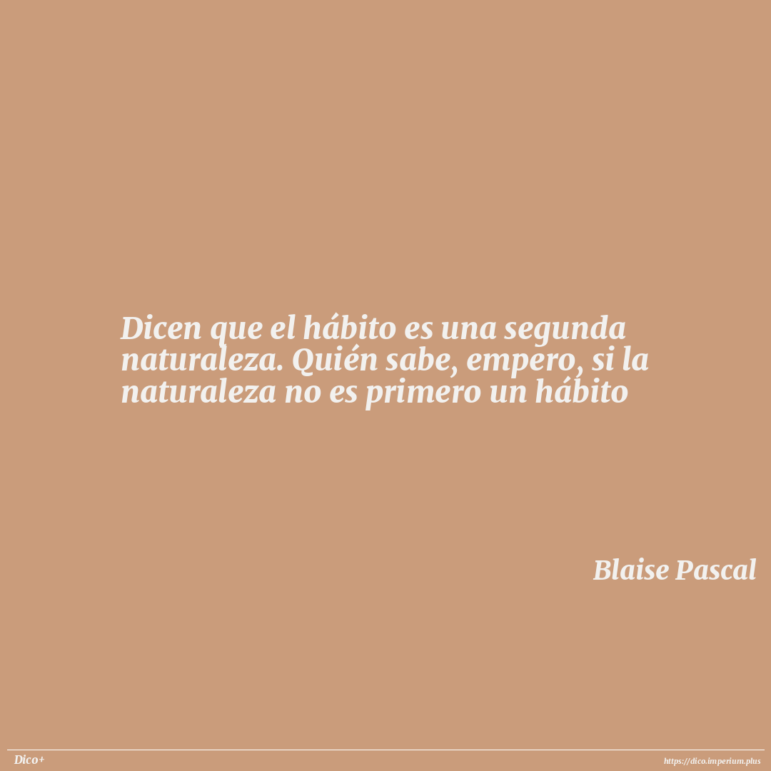 Dicen que el hábito es una segunda naturaleza. Quién sabe, empero, si la naturaleza no es primero un hábito