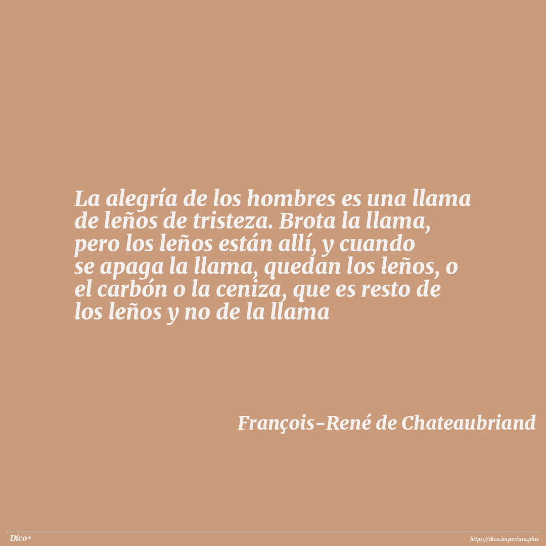La alegría de los hombres es una llama de leños de tristeza. Brota la llama, pero los leños están allí, y cuando se apaga la llama, quedan los leños, o el carbón o la ceniza, que es resto de los leños y no de la llama