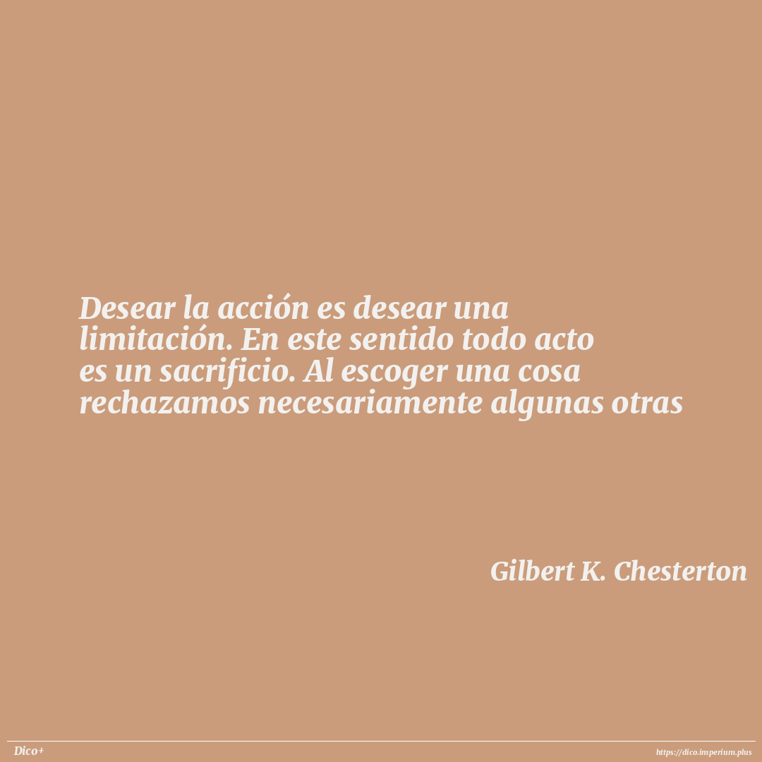 Desear la acción es desear una limitación. En este sentido todo acto es un sacrificio. Al escoger una cosa rechazamos necesariamente algunas otras