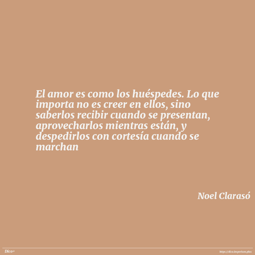 El amor es como los huéspedes. Lo que importa no es creer en ellos, sino saberlos recibir cuando se presentan, aprovecharlos mientras están, y despedirlos con cortesía cuando se marchan