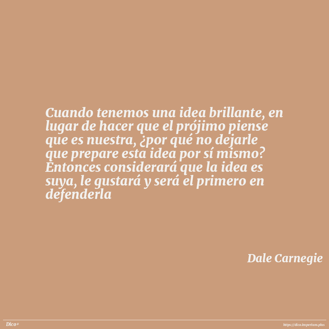 Cuando tenemos una idea brillante, en lugar de hacer que el prójimo piense que es nuestra, ¿por qué no dejarle que prepare esta idea por sí mismo? Entonces considerará que la idea es suya, le gustará y será el primero en defenderla