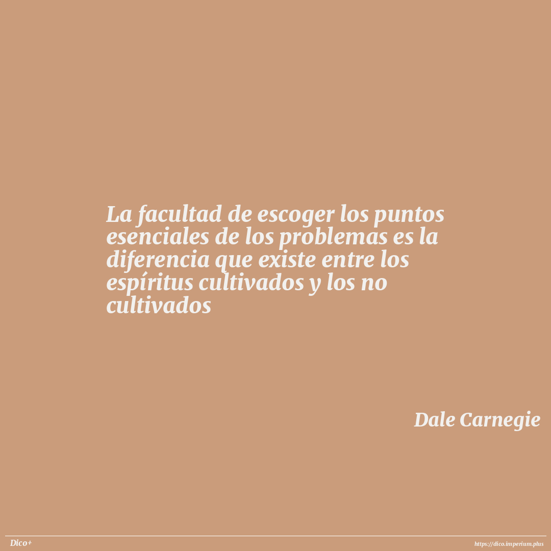 La facultad de escoger los puntos esenciales de los problemas es la diferencia que existe entre los espíritus cultivados y los no cultivados