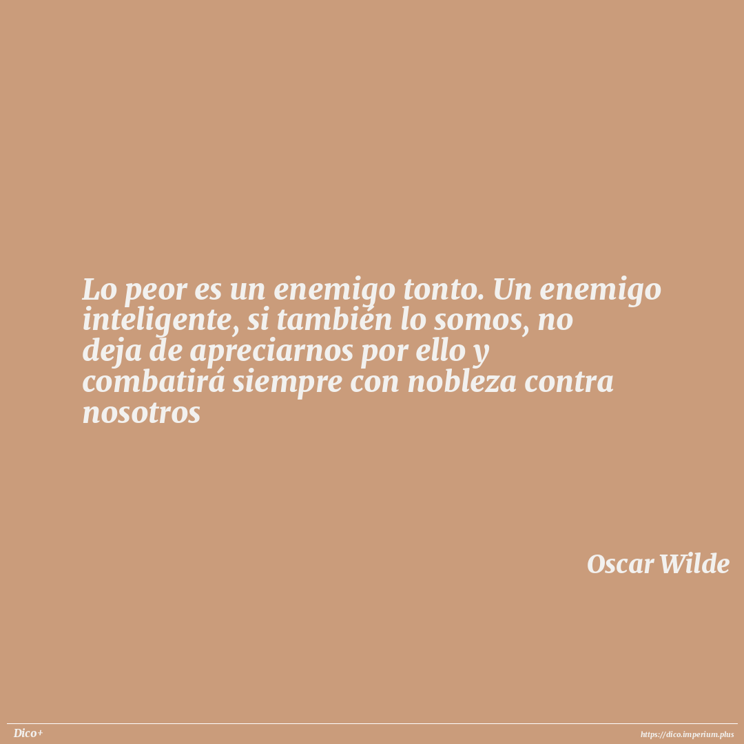 Lo peor es un enemigo tonto. Un enemigo inteligente, si también lo somos, no deja de apreciarnos por ello y combatirá siempre con nobleza contra nosotros