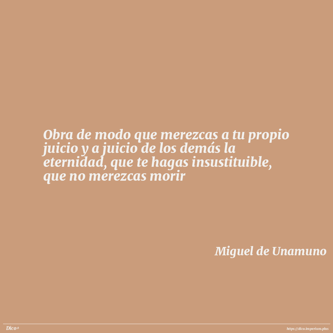 Obra de modo que merezcas a tu propio juicio y a juicio de los demás la eternidad, que te hagas insustituible, que no merezcas morir