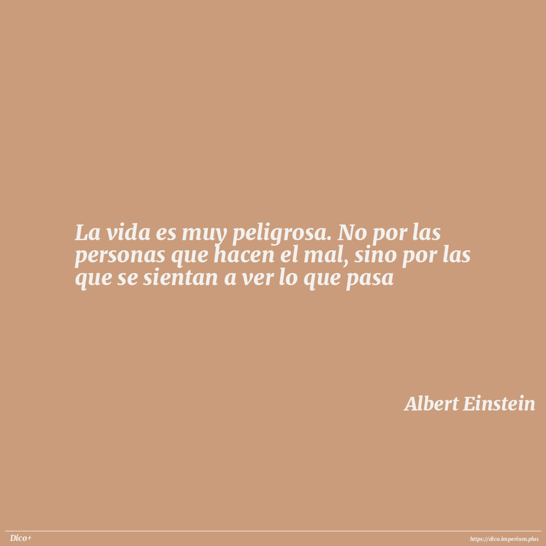 La vida es muy peligrosa. No por las personas que hacen el mal, sino por las que se sientan a ver lo que pasa