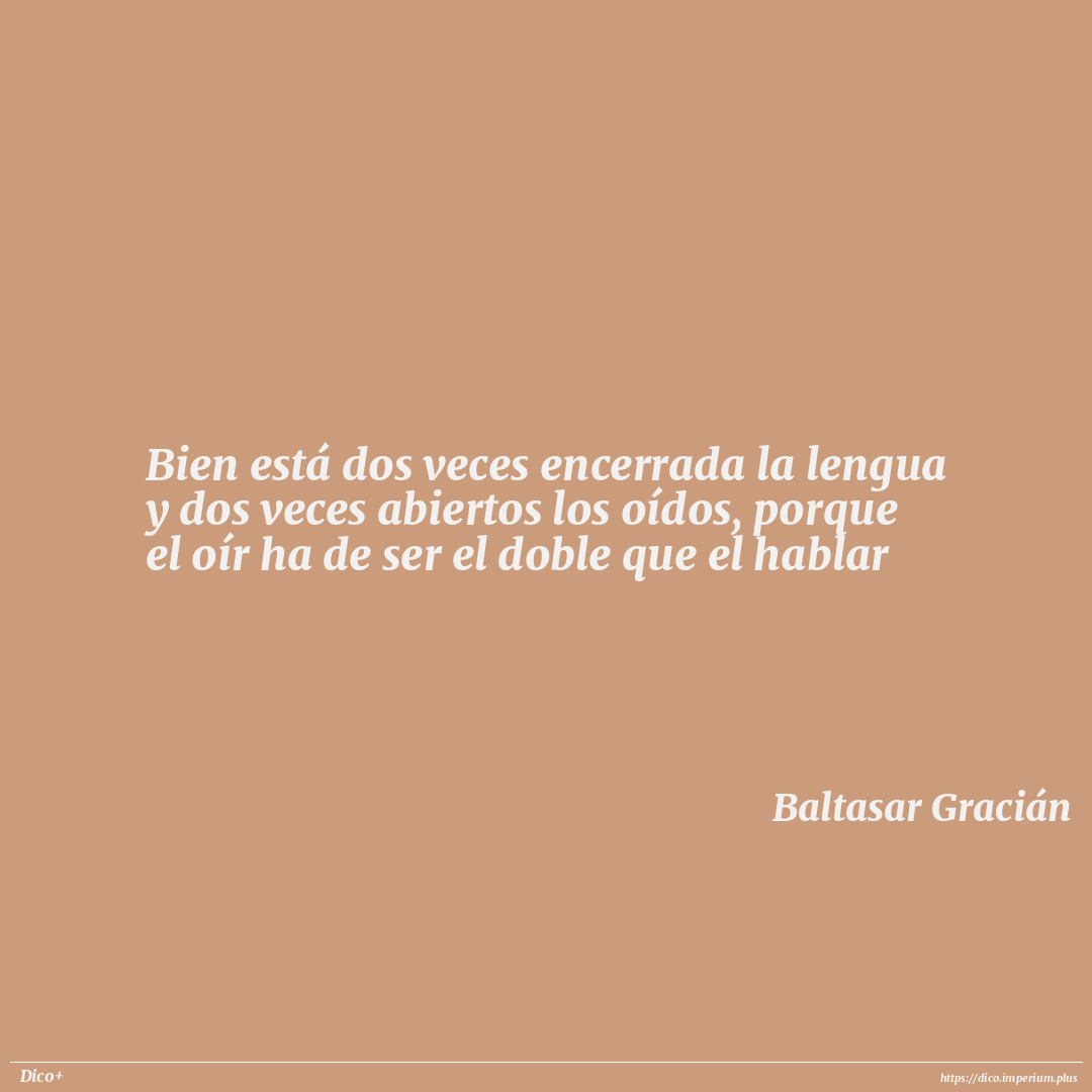 Bien está dos veces encerrada la lengua y dos veces abiertos los oídos, porque el oír ha de ser el doble que el hablar