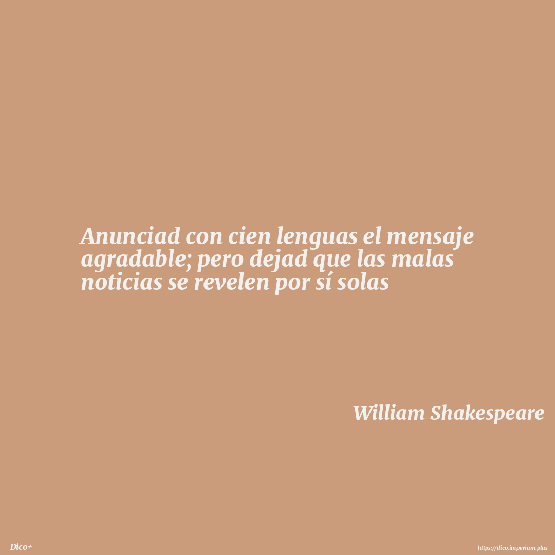 Anunciad con cien lenguas el mensaje agradable; pero dejad que las malas noticias se revelen por sí solas