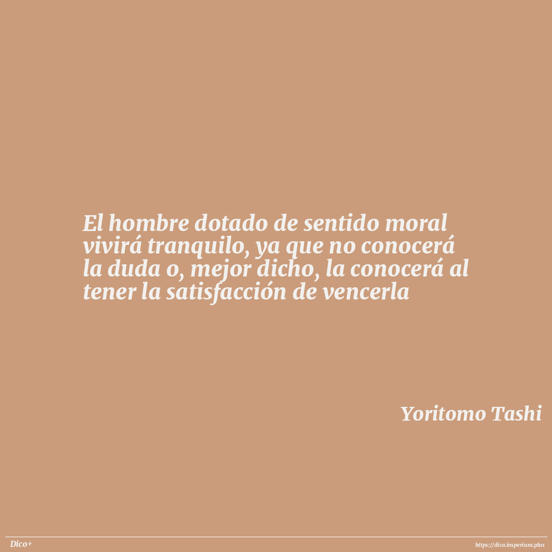 El hombre dotado de sentido moral vivirá tranquilo, ya que no conocerá la duda o, mejor dicho, la conocerá al tener la satisfacción de vencerla