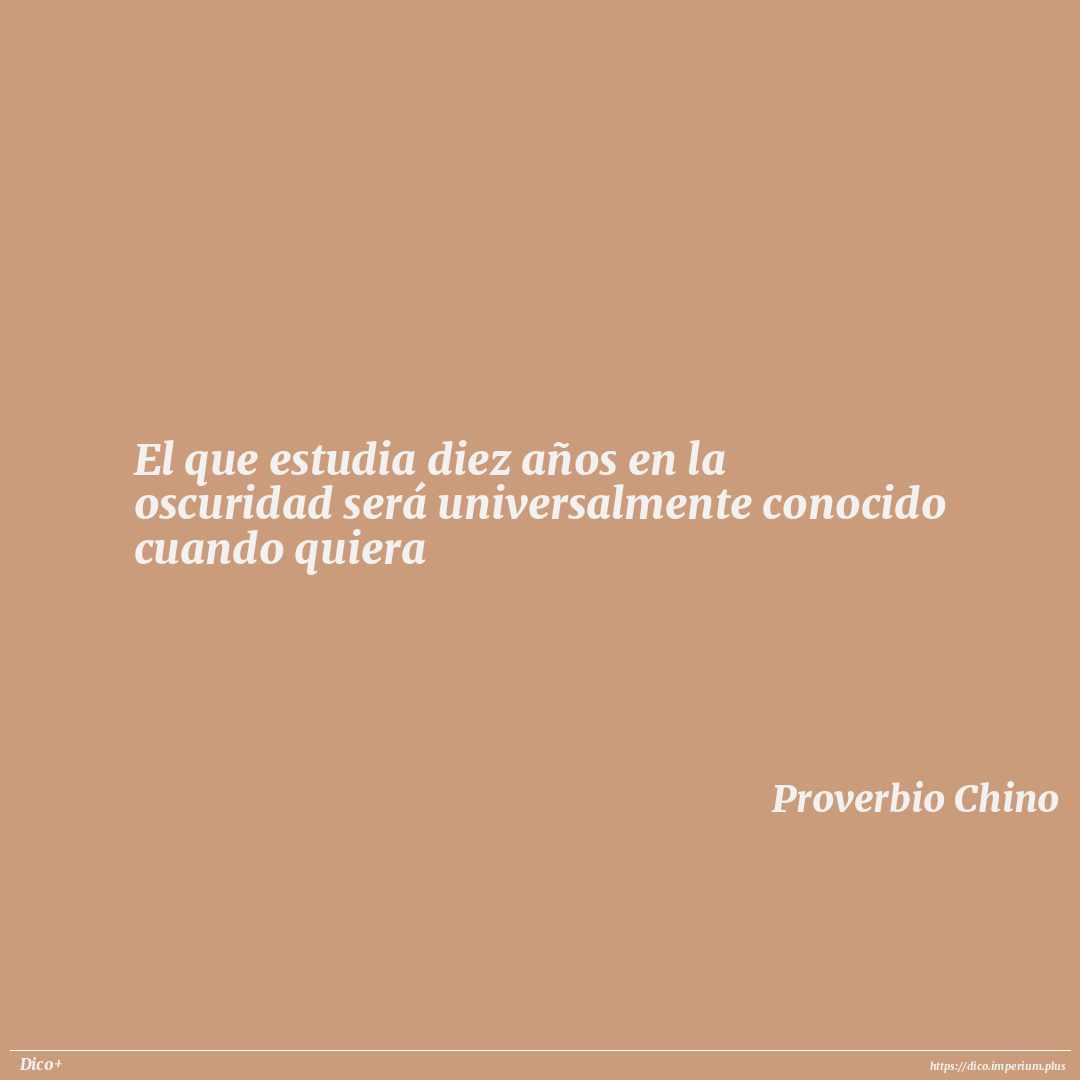 El que estudia diez años en la oscuridad será universalmente conocido cuando quiera
