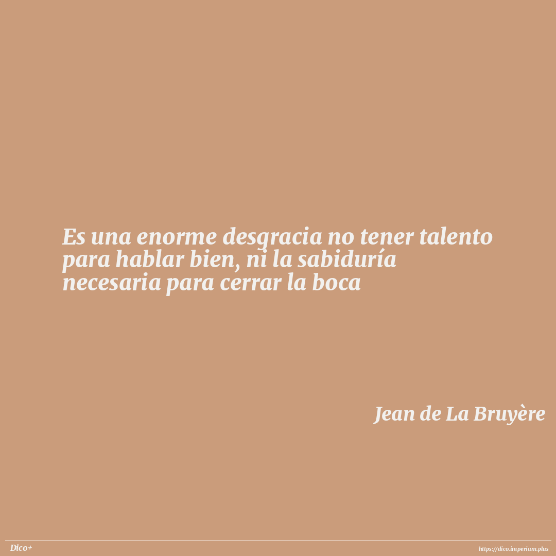Es una enorme desgracia no tener talento para hablar bien, ni la sabiduría necesaria para cerrar la boca