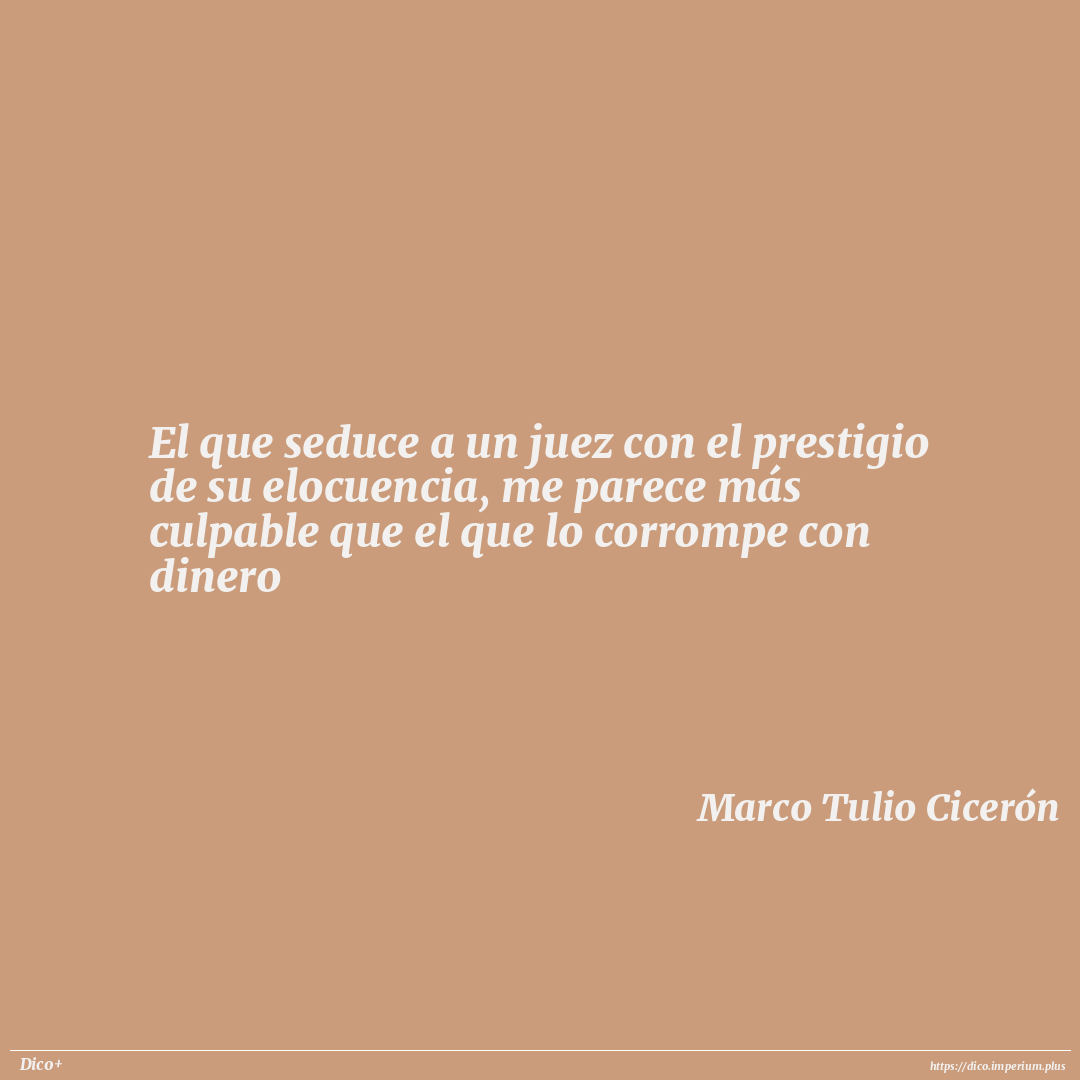 El que seduce a un juez con el prestigio de su elocuencia, me parece más culpable que el que lo corrompe con dinero