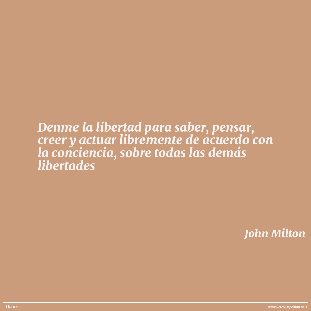 Denme la libertad para saber, pensar, creer y actuar libremente de acuerdo con la conciencia, sobre todas las demás libertades