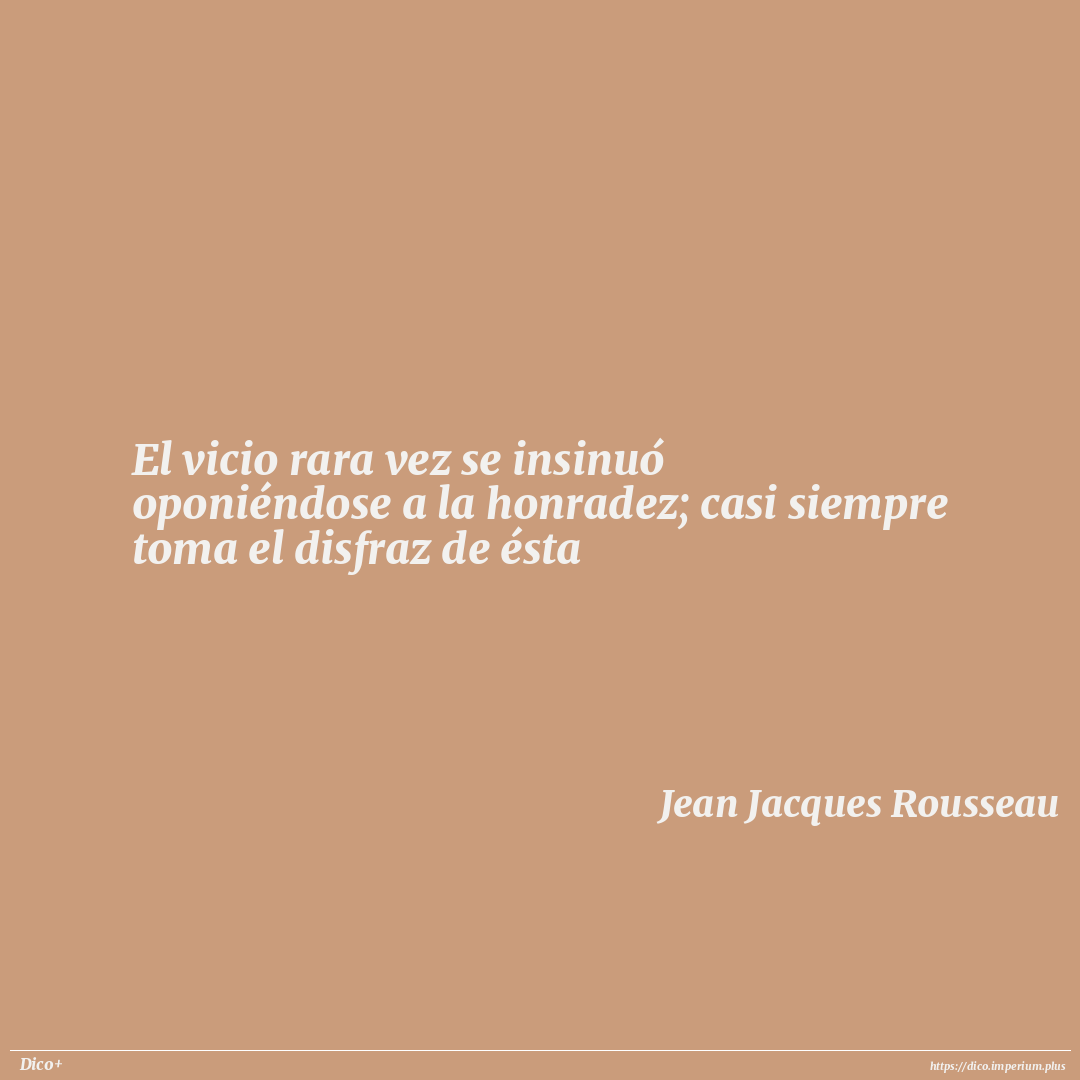 El vicio rara vez se insinuó oponiéndose a la honradez; casi siempre toma el disfraz de ésta