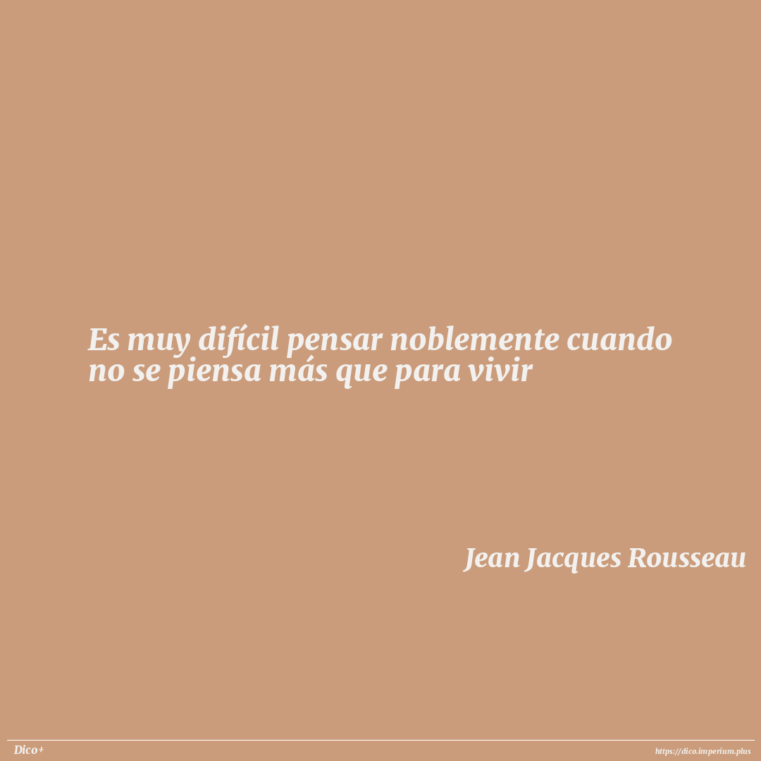 Es muy difícil pensar noblemente cuando no se piensa más que para vivir