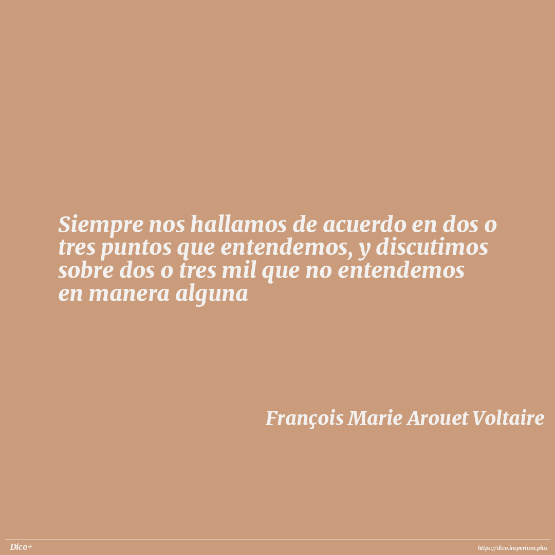 Siempre nos hallamos de acuerdo en dos o tres puntos que entendemos, y discutimos sobre dos o tres mil que no entendemos en manera alguna