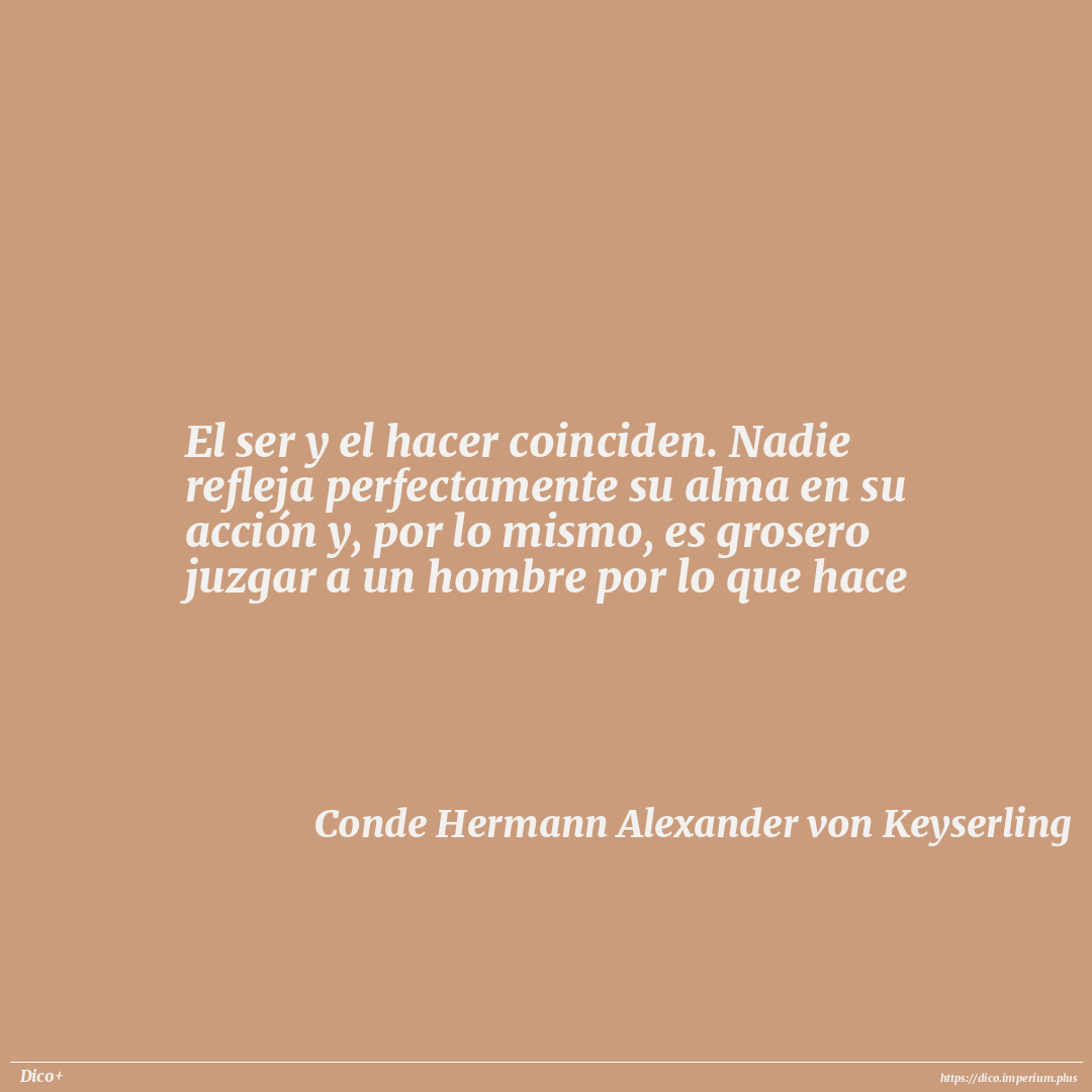 El ser y el hacer coinciden. Nadie refleja perfectamente su alma en su acción y, por lo mismo, es grosero juzgar a un hombre por lo que hace