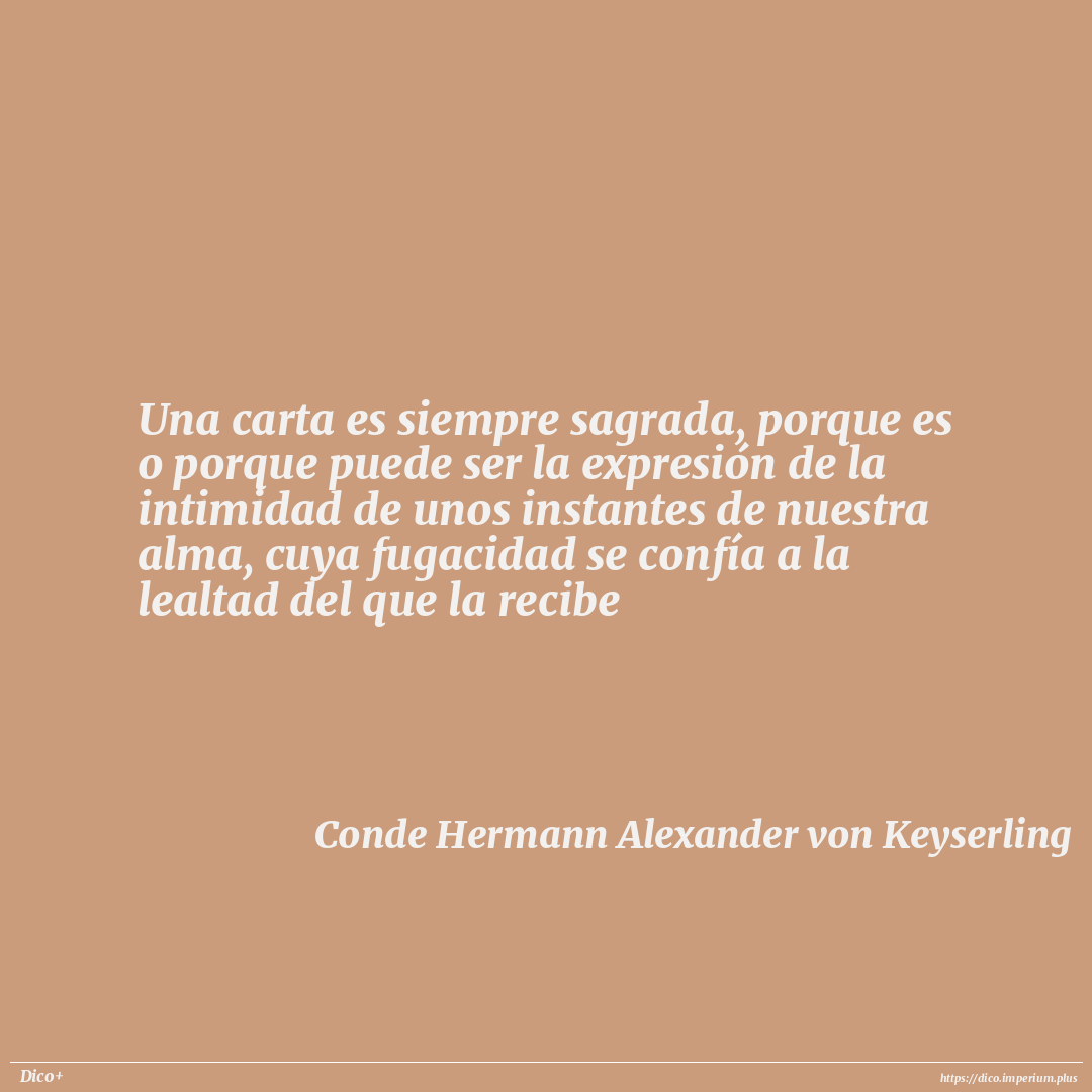 Una carta es siempre sagrada, porque es o porque puede ser la expresión de la intimidad de unos instantes de nuestra alma, cuya fugacidad se confía a la lealtad del que la recibe