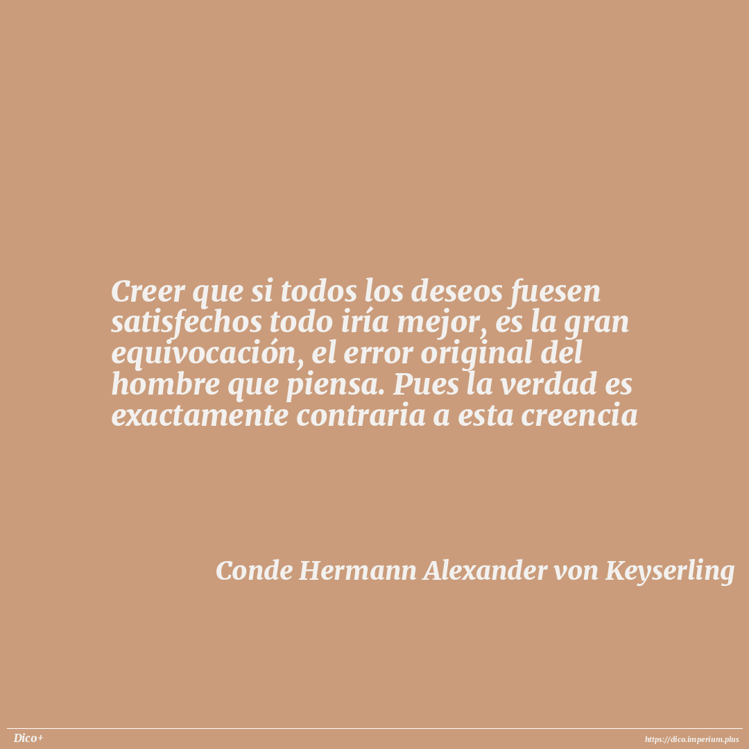 Creer que si todos los deseos fuesen satisfechos todo iría mejor, es la gran equivocación, el error original del hombre que piensa. Pues la verdad es exactamente contraria a esta creencia