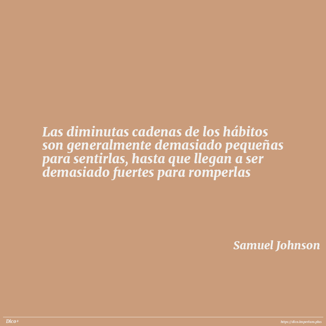 Las diminutas cadenas de los hábitos son generalmente demasiado pequeñas para sentirlas, hasta que llegan a ser demasiado fuertes para romperlas