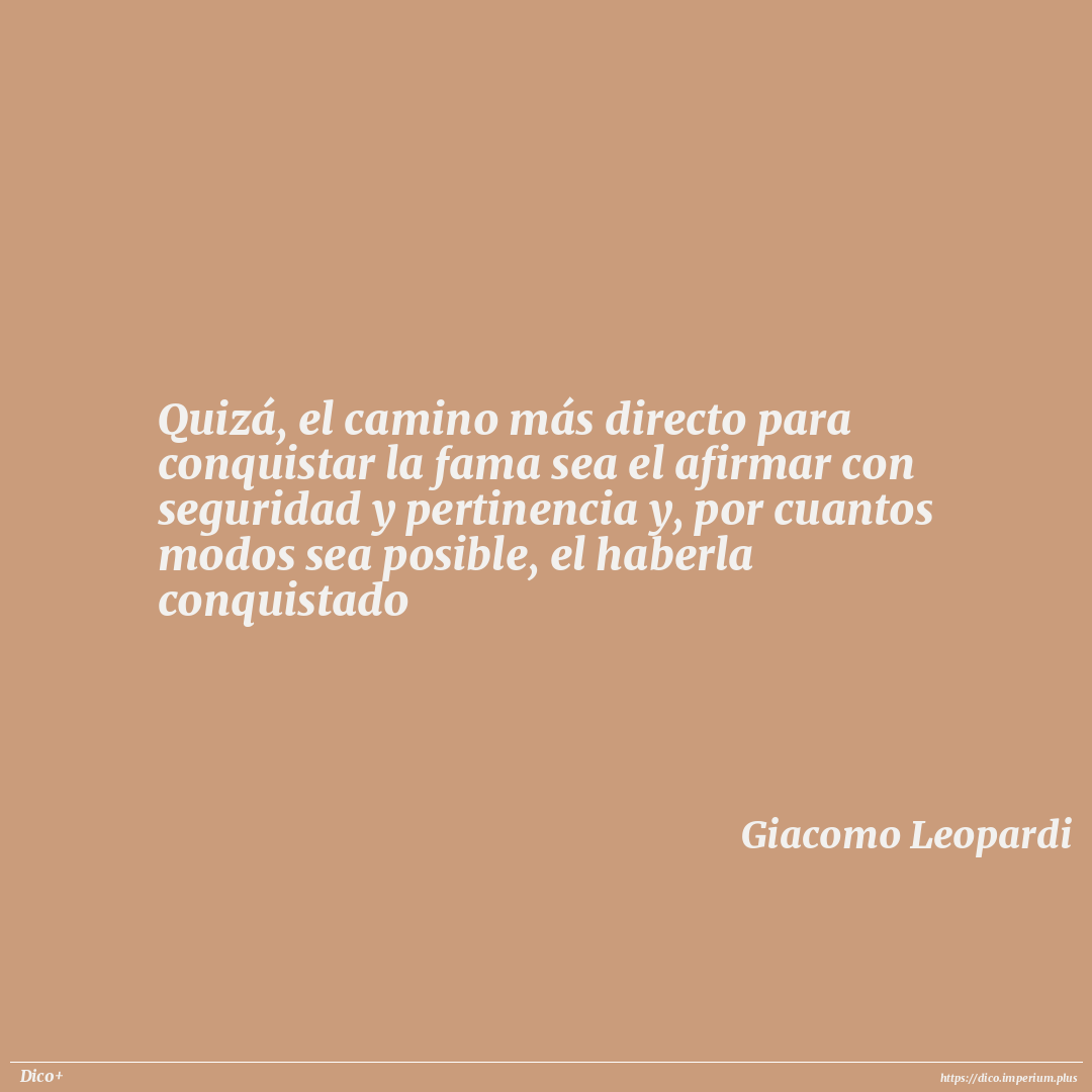 Quizá, el camino más directo para conquistar la fama sea el afirmar con seguridad y pertinencia y, por cuantos modos sea posible, el haberla conquistado