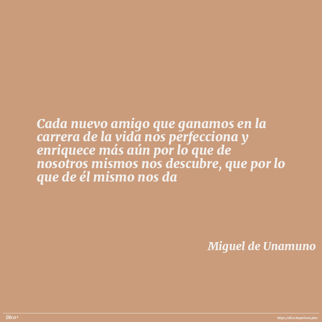 Cada nuevo amigo que ganamos en la carrera de la vida nos perfecciona y enriquece más aún por lo que de nosotros mismos nos descubre, que por lo que de él mismo nos da
