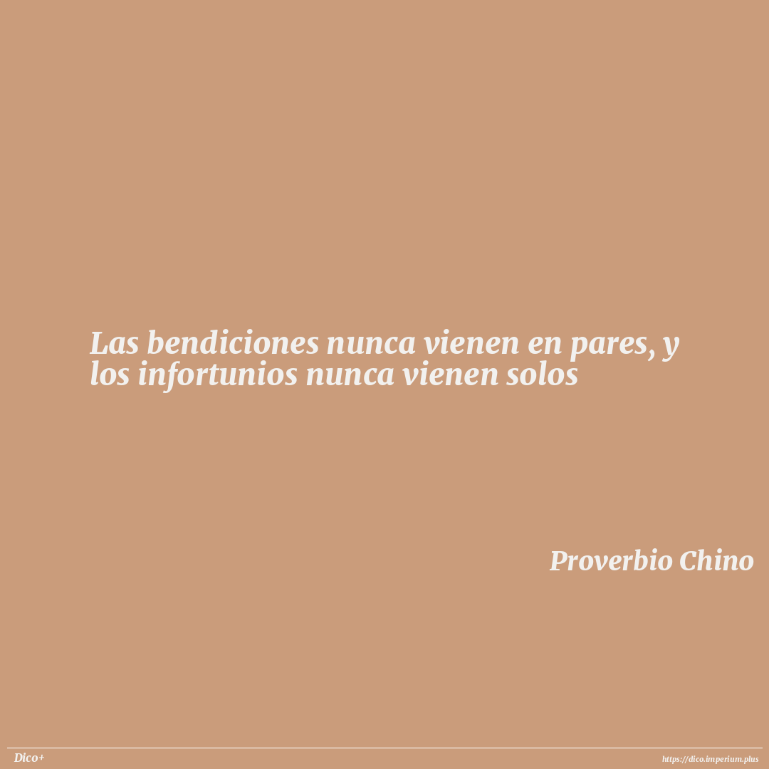 Las bendiciones nunca vienen en pares, y los infortunios nunca vienen solos