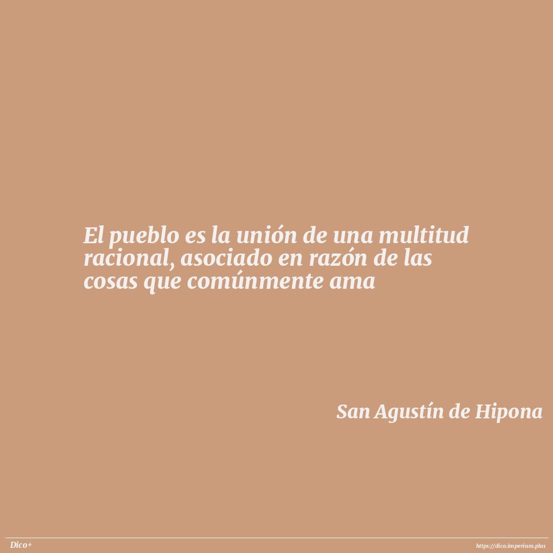 El pueblo es la unión de una multitud racional, asociado en razón de las cosas que comúnmente ama