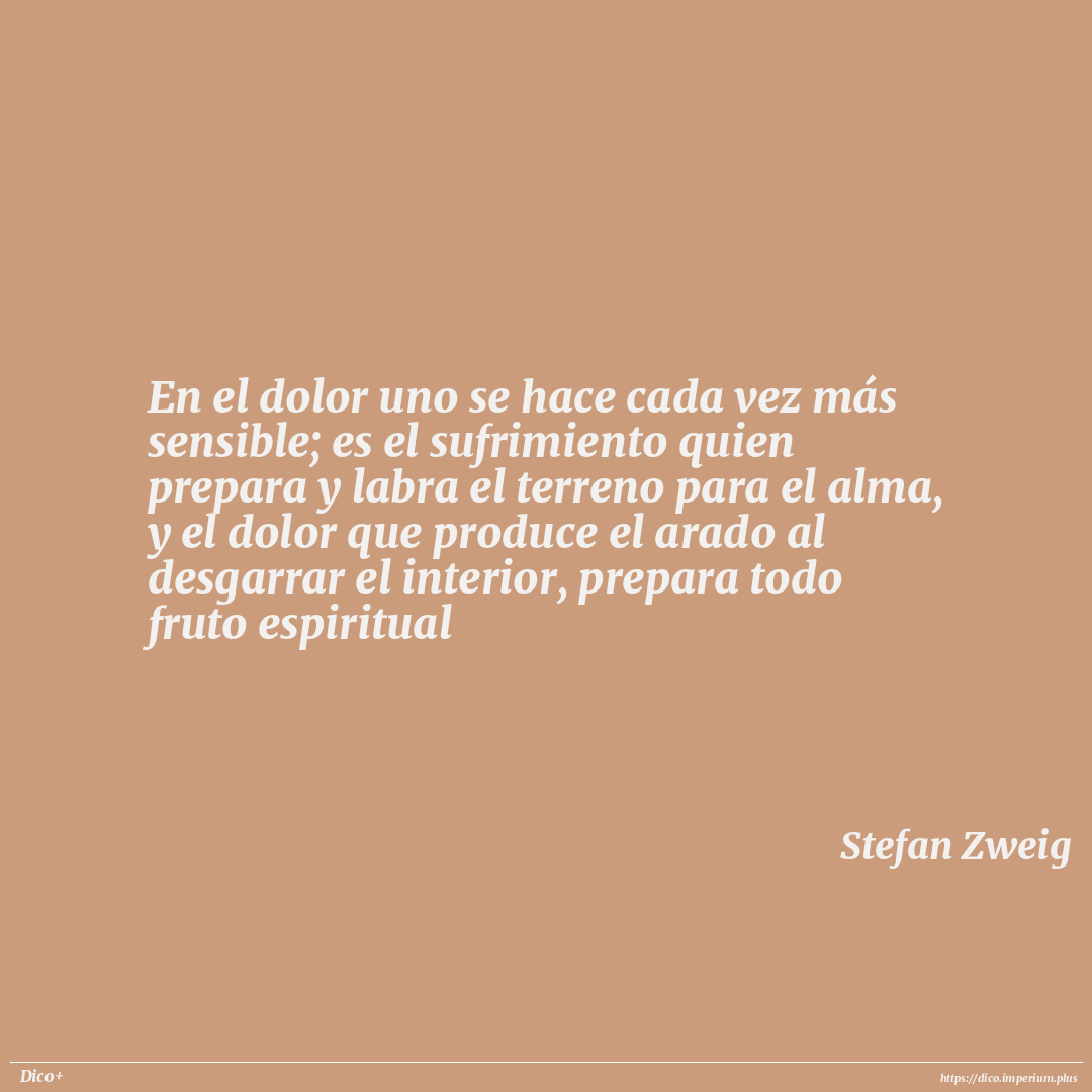 En el dolor uno se hace cada vez más sensible; es el sufrimiento quien prepara y labra el terreno para el alma, y el dolor que produce el arado al desgarrar el interior, prepara todo fruto espiritual