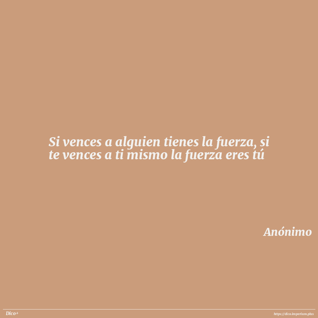 Si vences a alguien tienes la fuerza, si te vences a ti mismo la fuerza eres tú